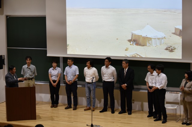 挨拶の中で緑川理事長は「大学の使命は地域貢献であり、それは地域に人材を輩出していくことであります。今日その第一歩を踏み出すことができ、大変嬉しく思っております。」と率直な喜びを語りました。また、友好の証として、本学の名誉学長である山岡荘八先生の書が贈呈されました。