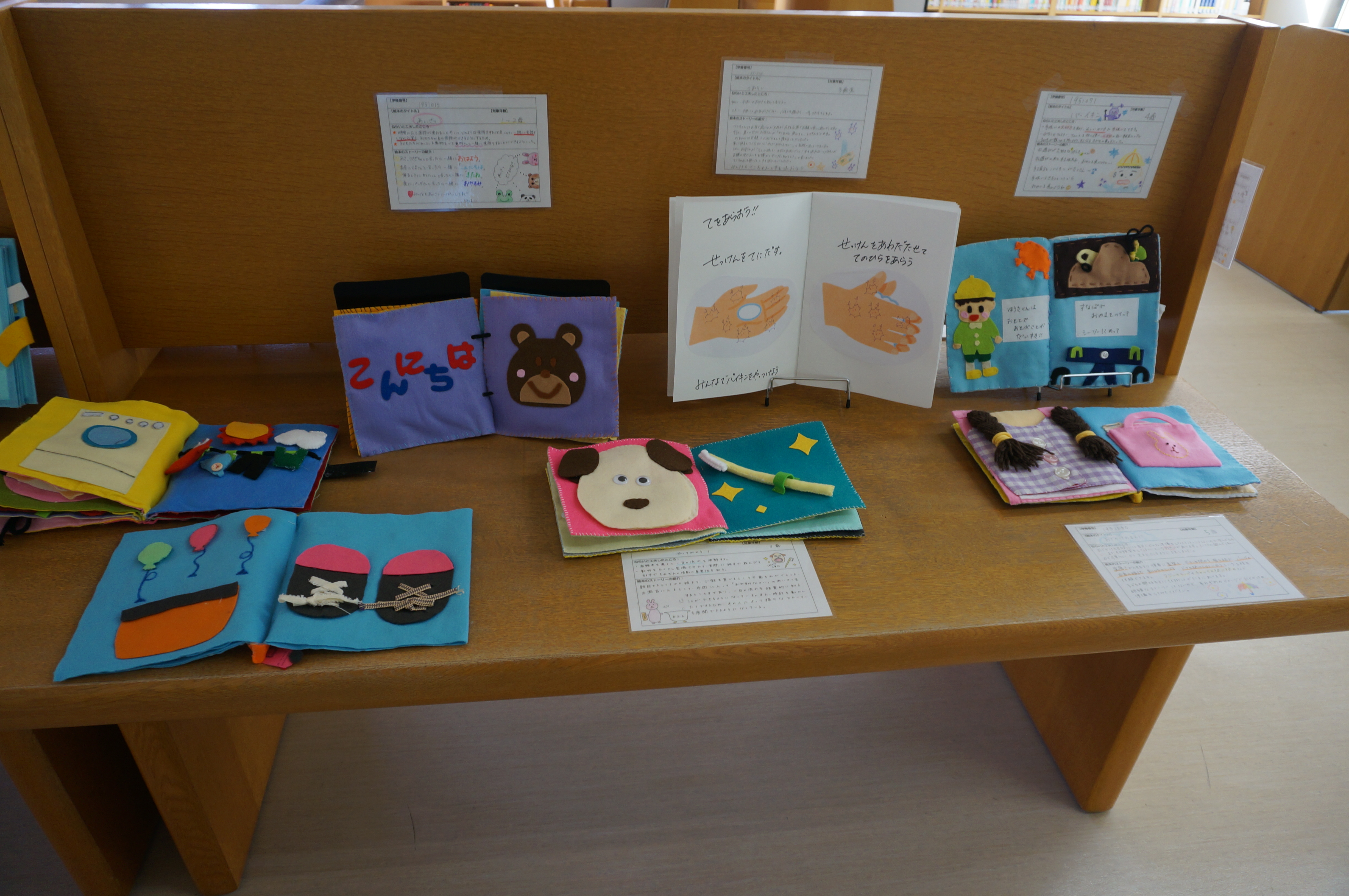 発達心理学II、特別支援の時間にて学生達がこどもの発達を学び、絵本やおもちゃを作成しました。