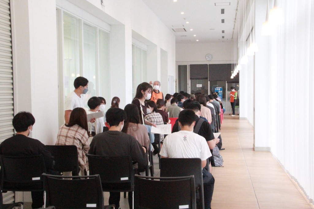 本学を会場に自主運営で行ってきました新型コロナワクチン「大学拠点接種(職域接種)」の3回目接種は、7月24日の第7グループで終了し、延べ1014人が接種しました。また1回目9人、2回目9人への接種も行いました。