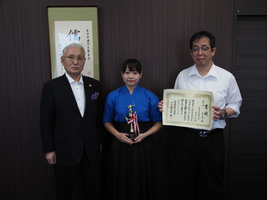 弓道部 城島汐桜選手(経済経営学部3年) 全日本学生弓道選手権大会 女子個人6位入賞の快挙を報告しました
