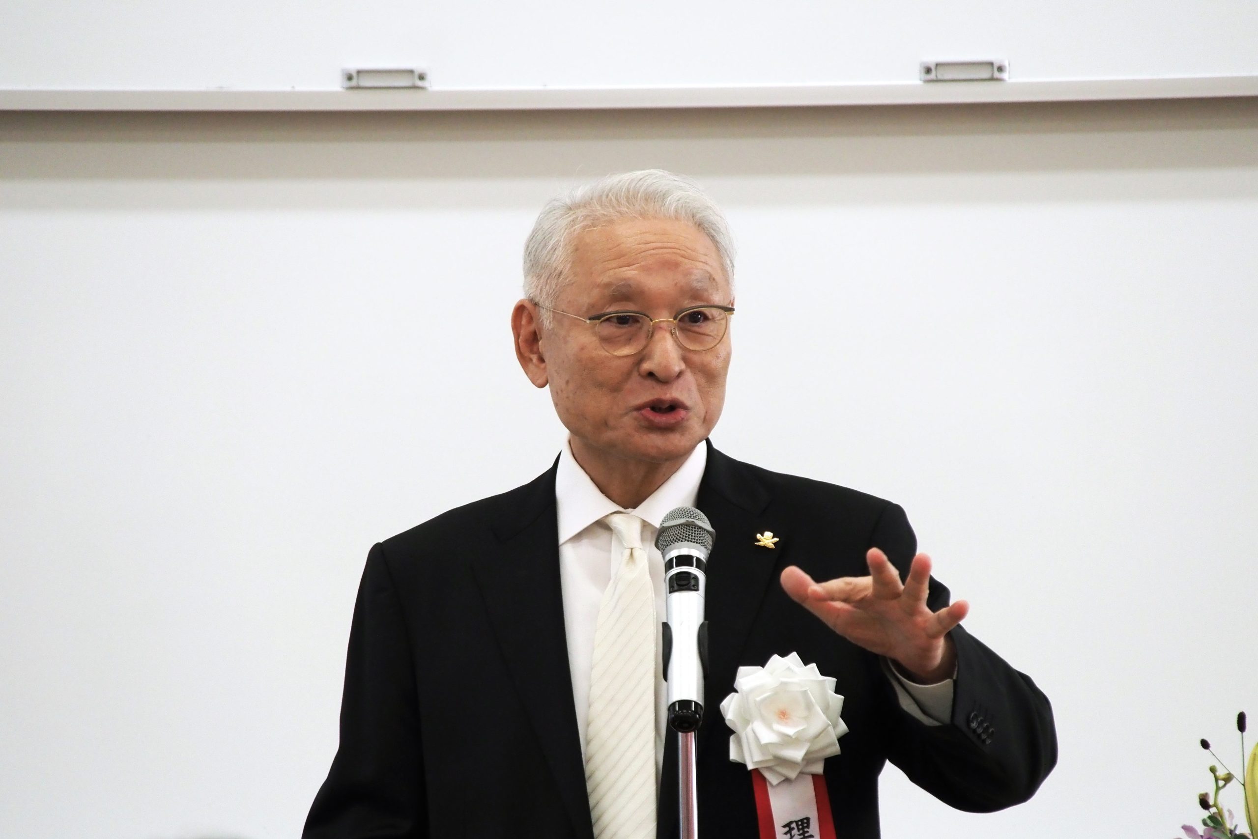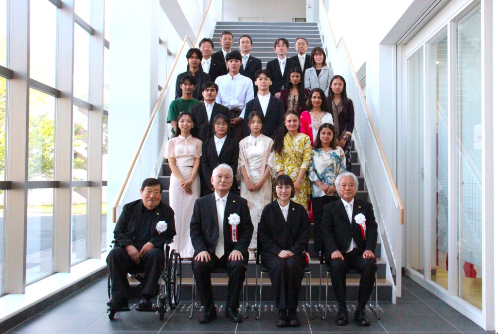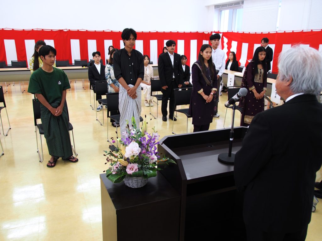 緑川浩司理事長からは「本日入学をされた皆さんは、世界の主役です。困難があった時、闇が暗いほど、必ず明るい日差しがさします。そして、将来に向け皆さんが活躍していくのです。AIが発達していますが、何事にも最後は人間です。人間の責任が重要になってきます。私からはこれから述べる3つを大切にしてください。1つ目は知見が大事です。2つ目は倫理観です。3つ目は人を想う、仁の心です。この3つを大事にして世界のリーダーになってください。入学おめでとう」と祝辞を送りました。
