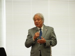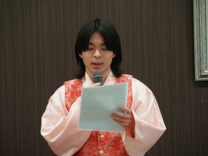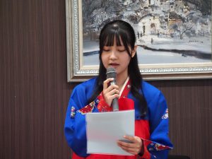 続いて、中山哲志学長から「大変立派な報告に感動しました。韓国の現地の方々との文化交流のみならず、語学の興味関心をさらに深めることが出来たように感じます。4泊5日間という短いながらも大変充実した研修であったことが良く分かります。様々な訪問先でも皆さんを温かく迎え入れてもらい、若い世代の方々の交流の重要性を強く認識させられる報告でした。このたくさんの経験を糧に、新たな地に向かって羽ばたいていってほしいと思います。また、本学には韓国出身の留学生や、まだ韓国研修を経験していない日本人学生も多くいます。ぜひ、皆さんの経験を分かち合いながら、学内から交流の輪を広げていってほしいと思います。」と言葉が送られました。