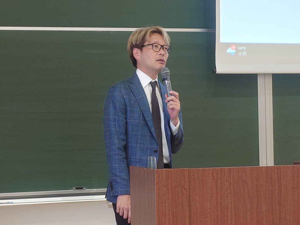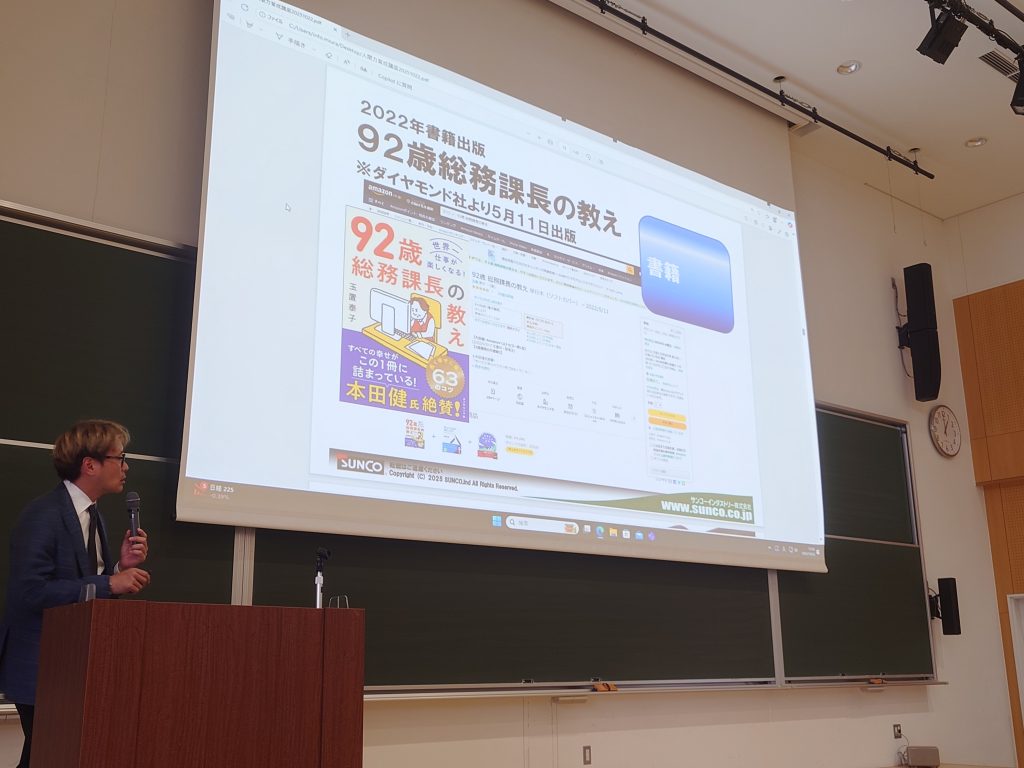 全学共通授業「人間力の育成B」において10月22日、サンコーインダストリー代表取締役の奥山淑英先生による人間力育成講座が行われました。