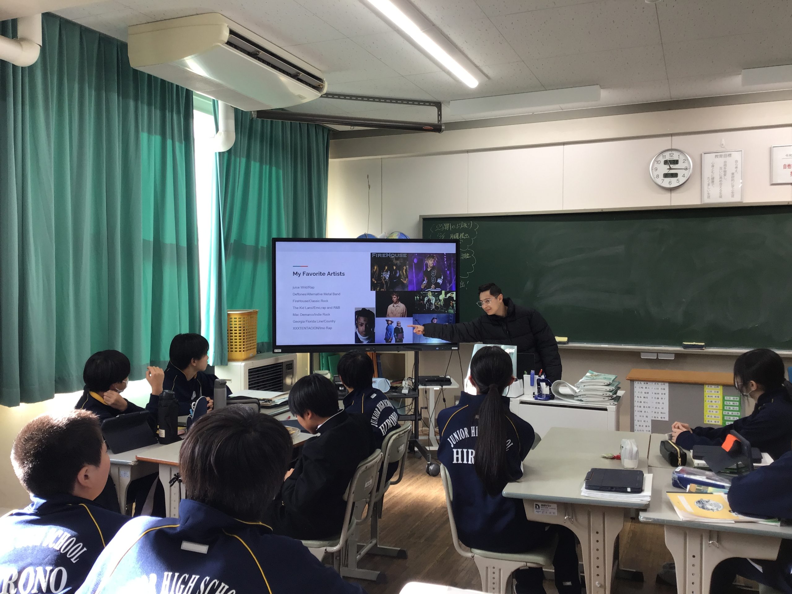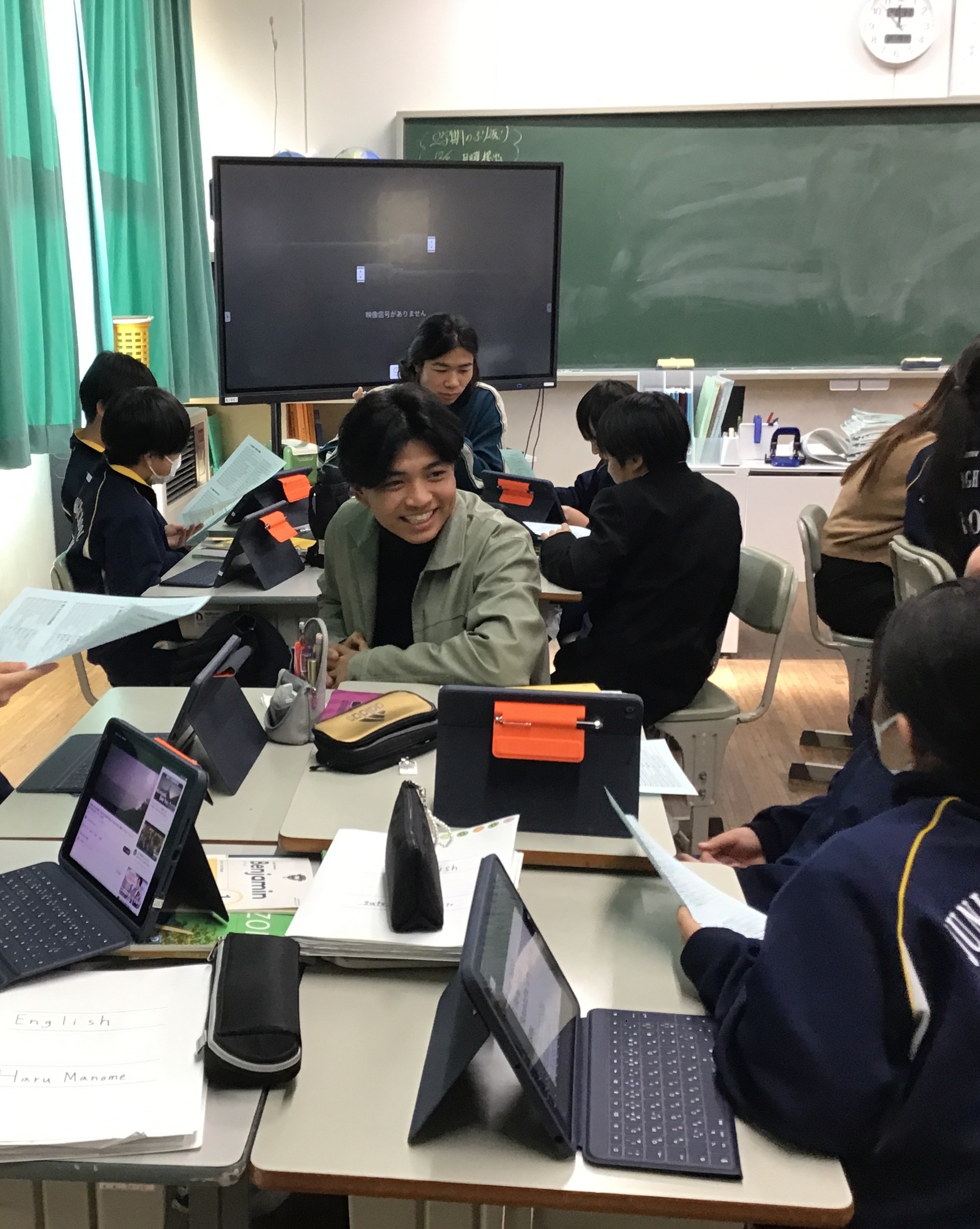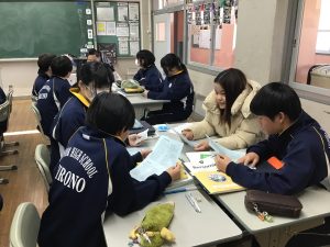 10月に続き広野中学校の生徒と本学留学生が英語を使って交流する「グローバルデイ」が、12月9日(火)広野中学校にて行われました。本学からはアメリカ人1名、ペルー人1名、ミャンマー人3名、合計5名の留学生が参加しました。