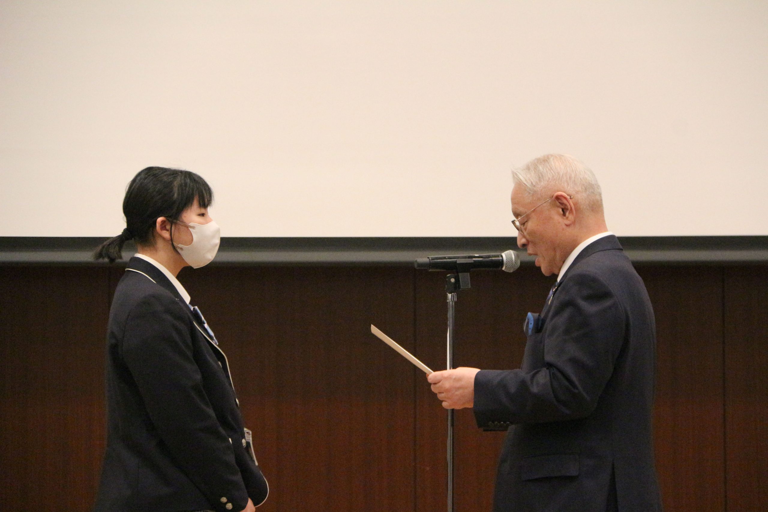 参加者には修了証が贈られ、CIFALジャパン共同代表の緑川浩司学校法人昌平黌 理事長から参加者を代表して中国大使役を務めた東日本国際大学附属昌平中学校の松本叶実さん(1年)へ修了証が授与されました。